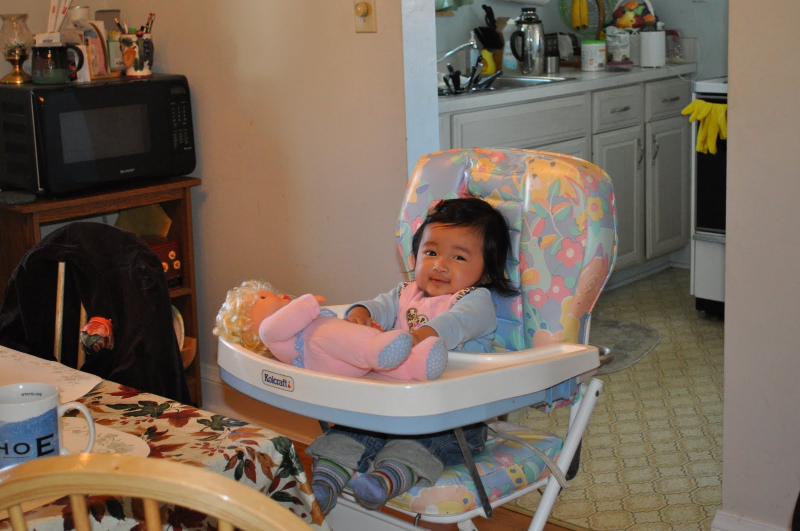 We got together with family every day during our time in Lousiville. I love the picture below of Ivy in the center of a circle of admirers.... her first hen party! Ivy enjoyed lots of cuddling from everyone! She was a good sport, as usual and seemed delighted at all of the attention. She slept well each night in her little tent and woke up refreshed.